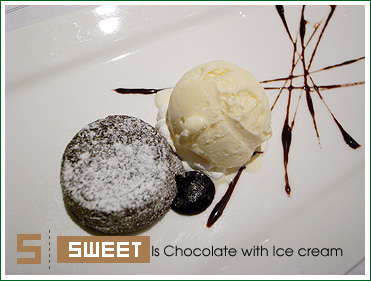 烤的酥脆香濃的蛋糕,流出溫熱的巧克力- 是苦甜的純巧克力味